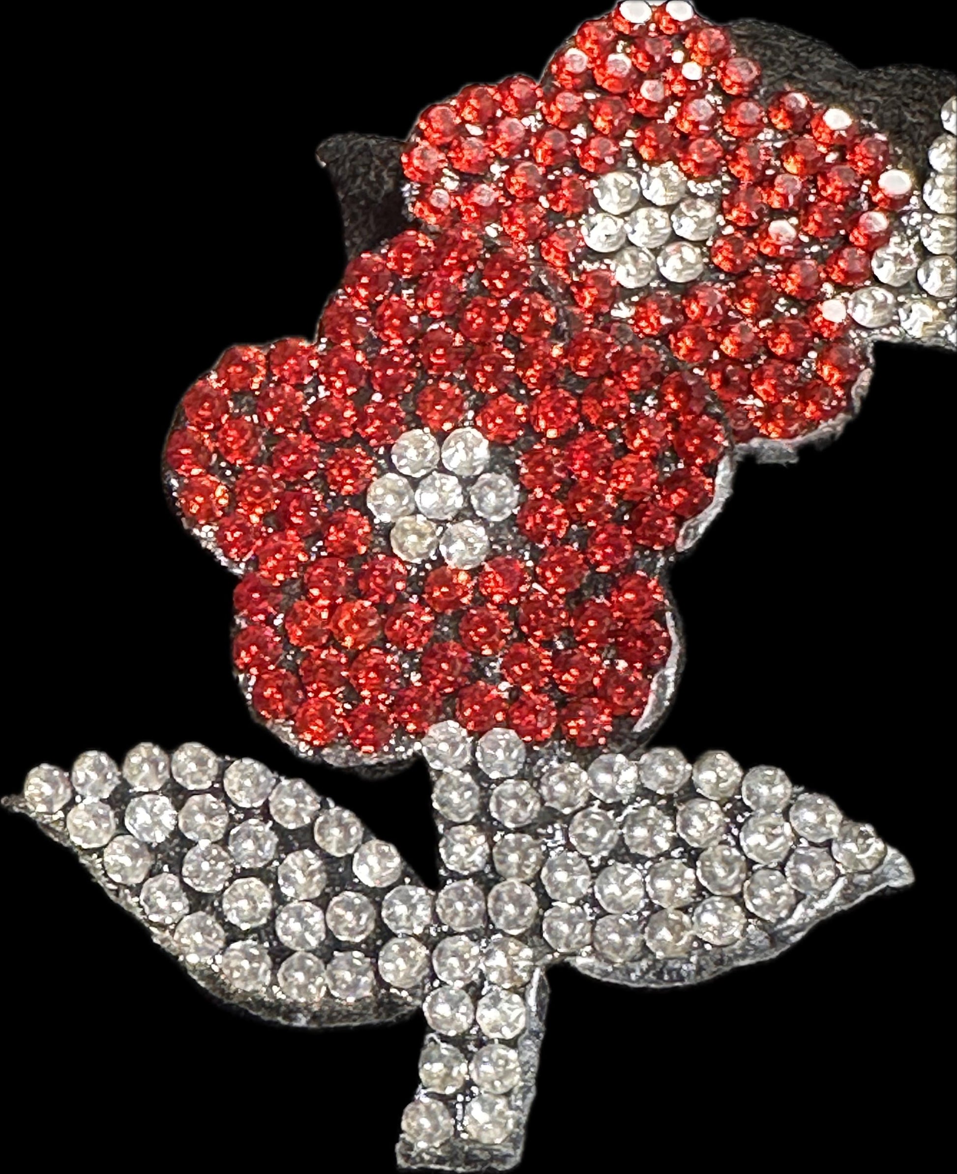 Each piece features red and silver rhinestones arranged in a flower and leaf design, set on a soft black felt backing for easy gluing or sewing. These are perfect for DIY crafts, headbands, clothing, jewelry, bags, home décor, and more!