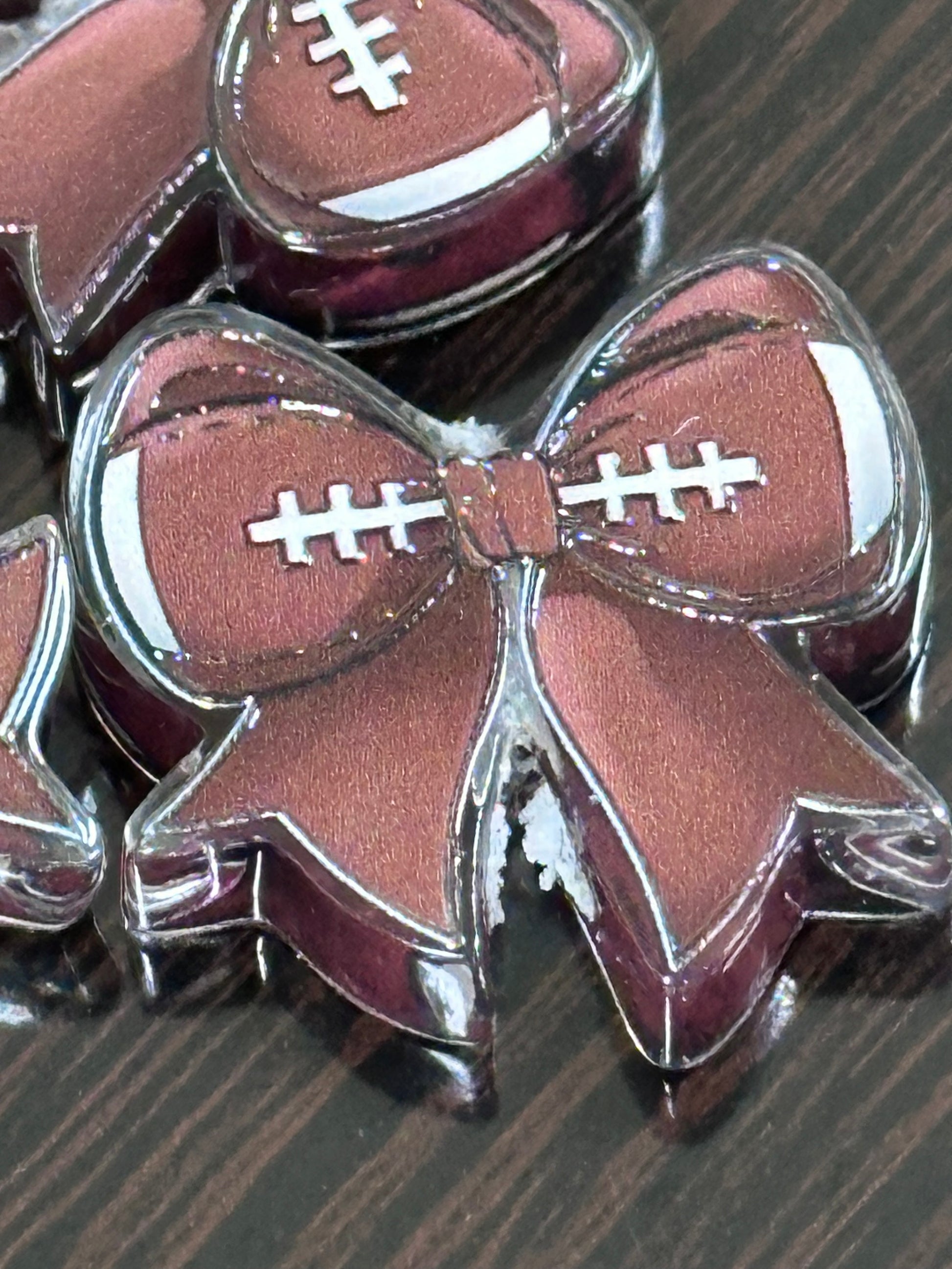 Football bow acrylic focal bead- set of 2/ focal bead/ pen beading / keychain bead