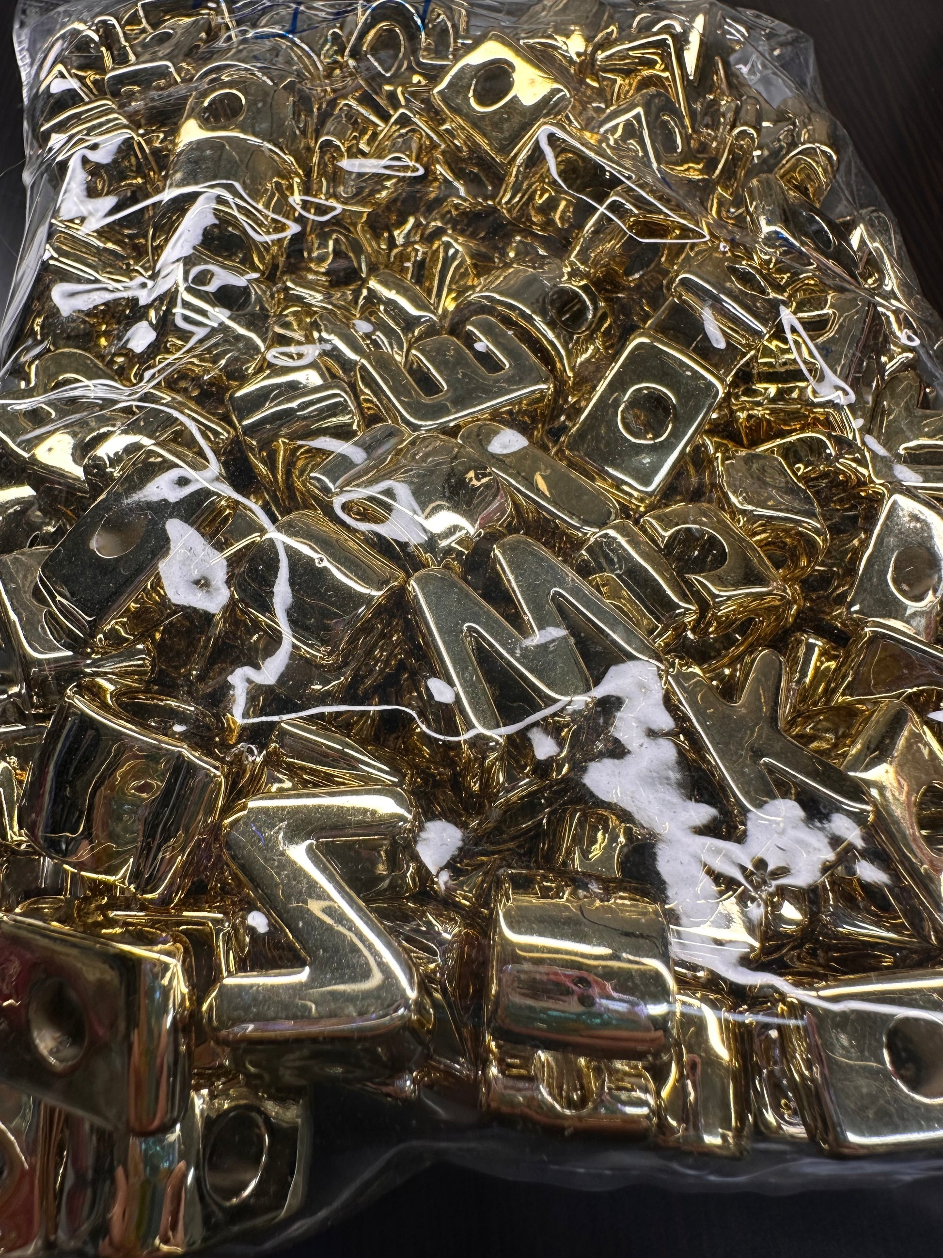 Gold Metallic Plastic Letter Beads – Bulk Bag of Mixed A–Z Alphabet Beads (Vertical Hole) over 150 bead alphabet -