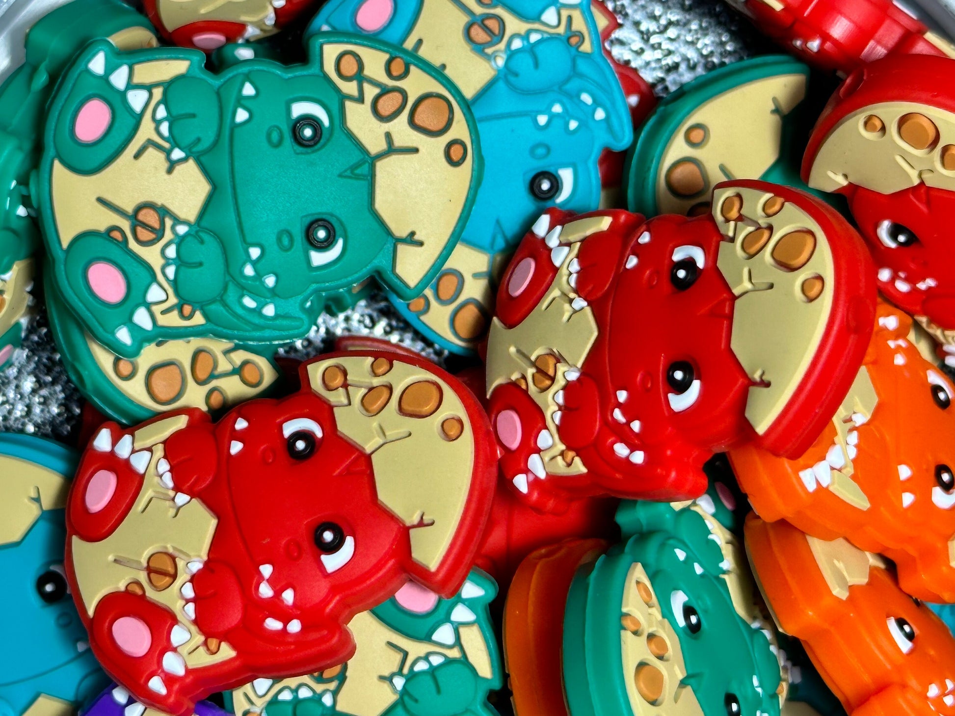 Hatching Dinosaurs/ Focal Bead/ beadable pen/ Silicone bead/ keychain bead/ baby/ dinos