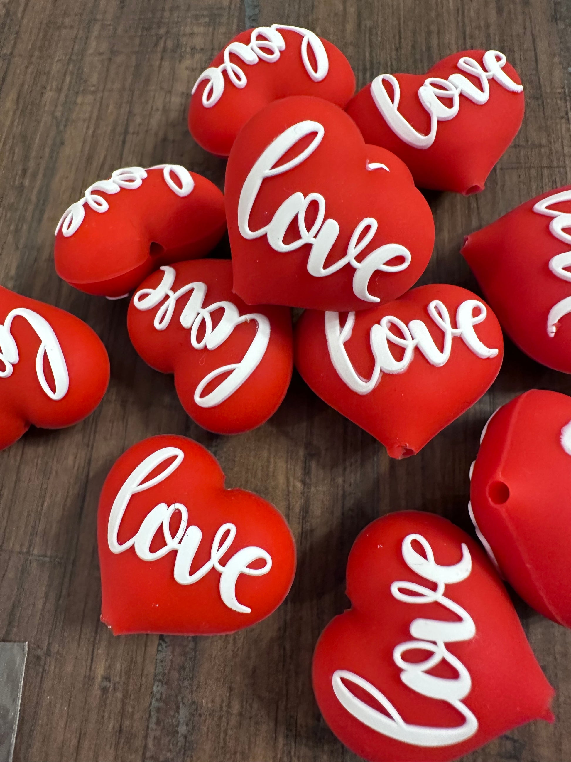 3D Heart Love beads/ beadable pen/ Silicone bead/ keychain bead/Valentines Day hearts/ red heart bead