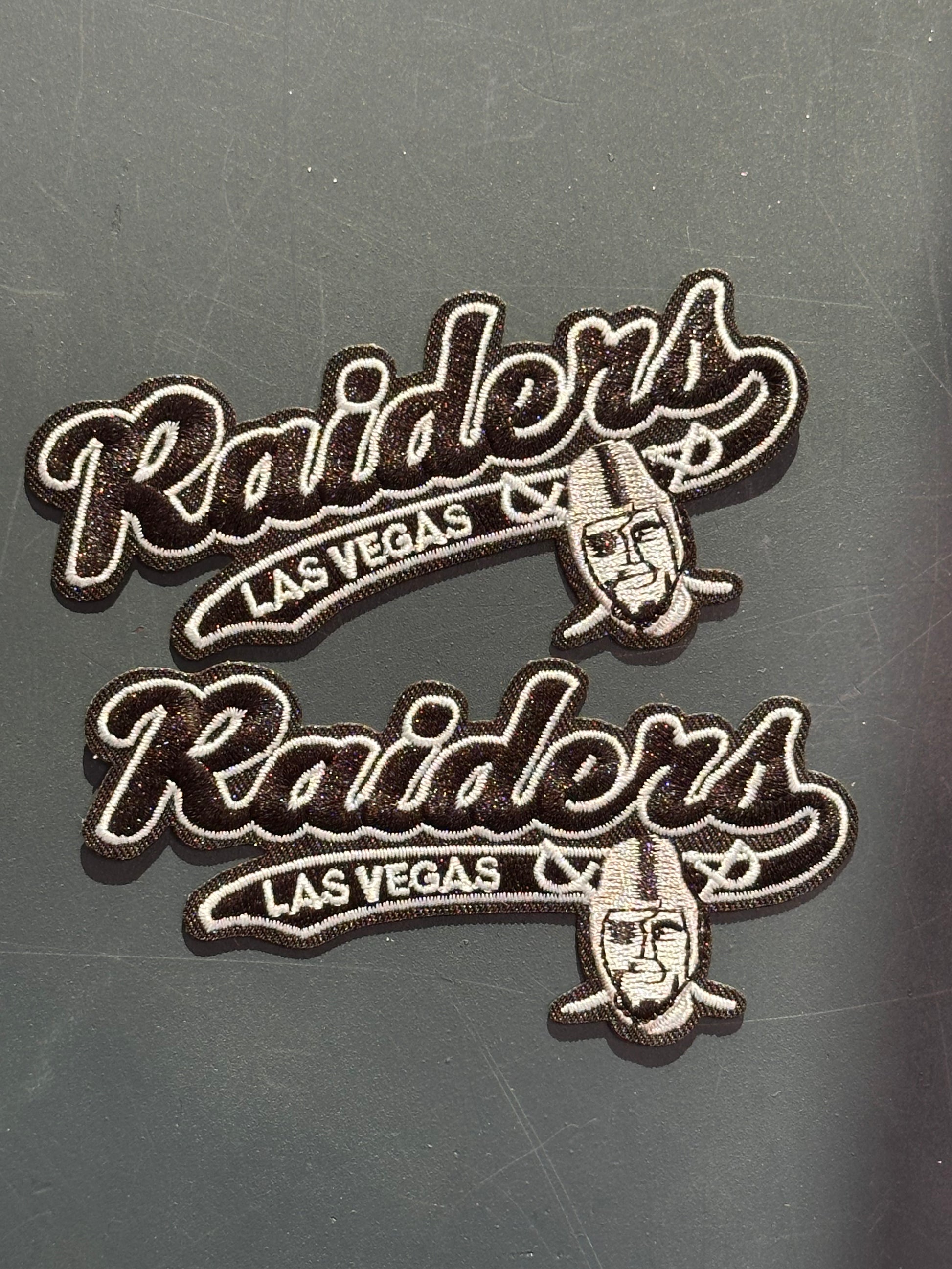 LAS VEGAS RAIDERS EMBROIDERED IRON ON PATCH/ SIZE APPROX 4" x 2"/ QUALITY MATERIAL/FABRIC PATCHES/FOOTBALL TEAM