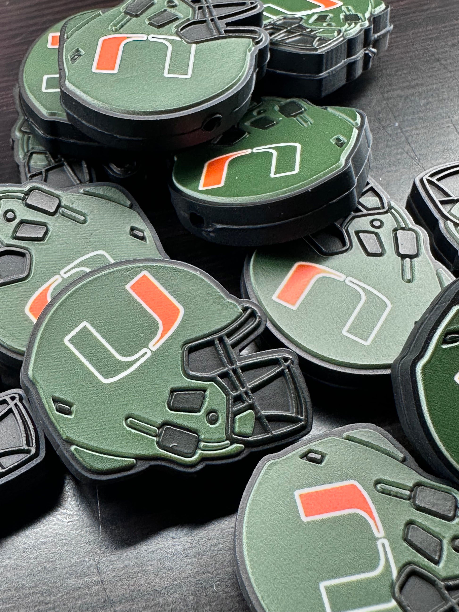 Miami Hurricanes focal bead - helmet shaped football team bead- University of Miami