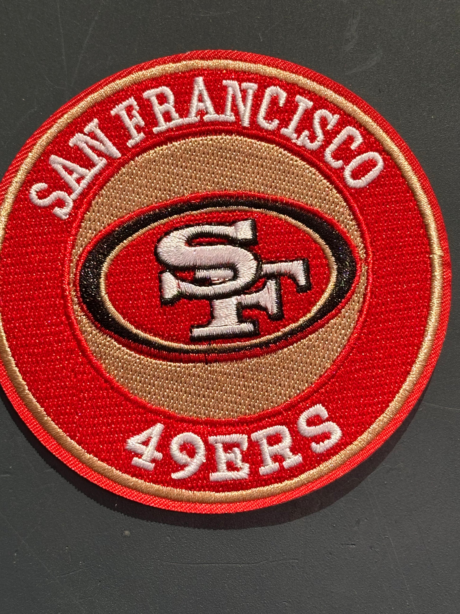 SF 49ers/EMBROIDERED IRON ON PATCH/ SIZE APPROX 4" ROUND/ QUALITY MATERIAL/FABRIC PATCHES/FOOTBALL TEAM