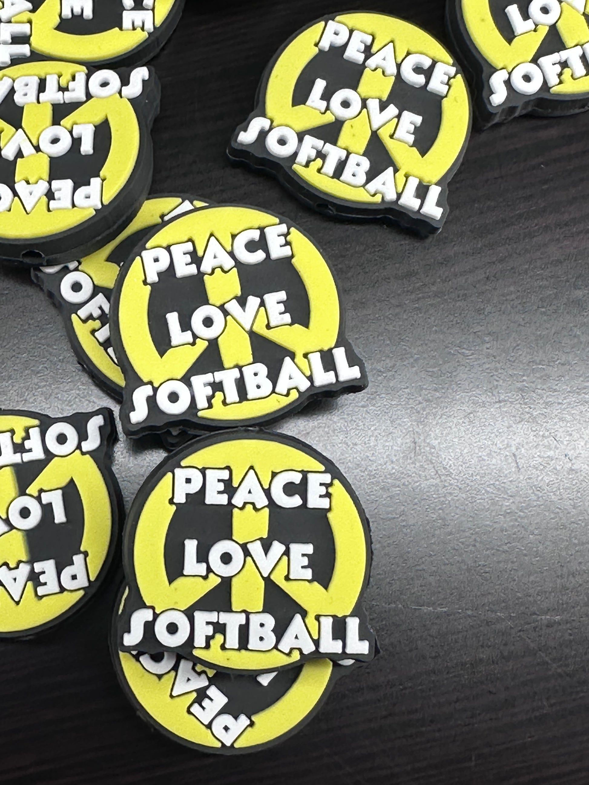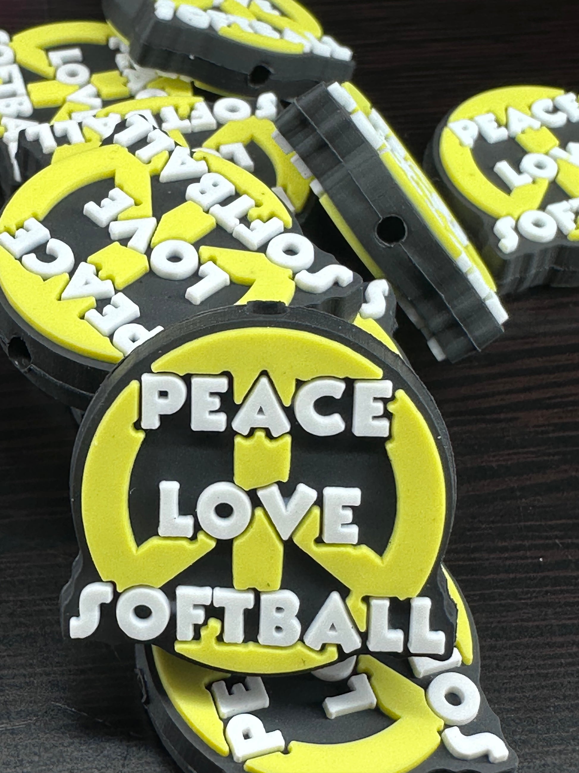 Peace Love and Softball- silicone focal bead/ Baseball /Peace sign