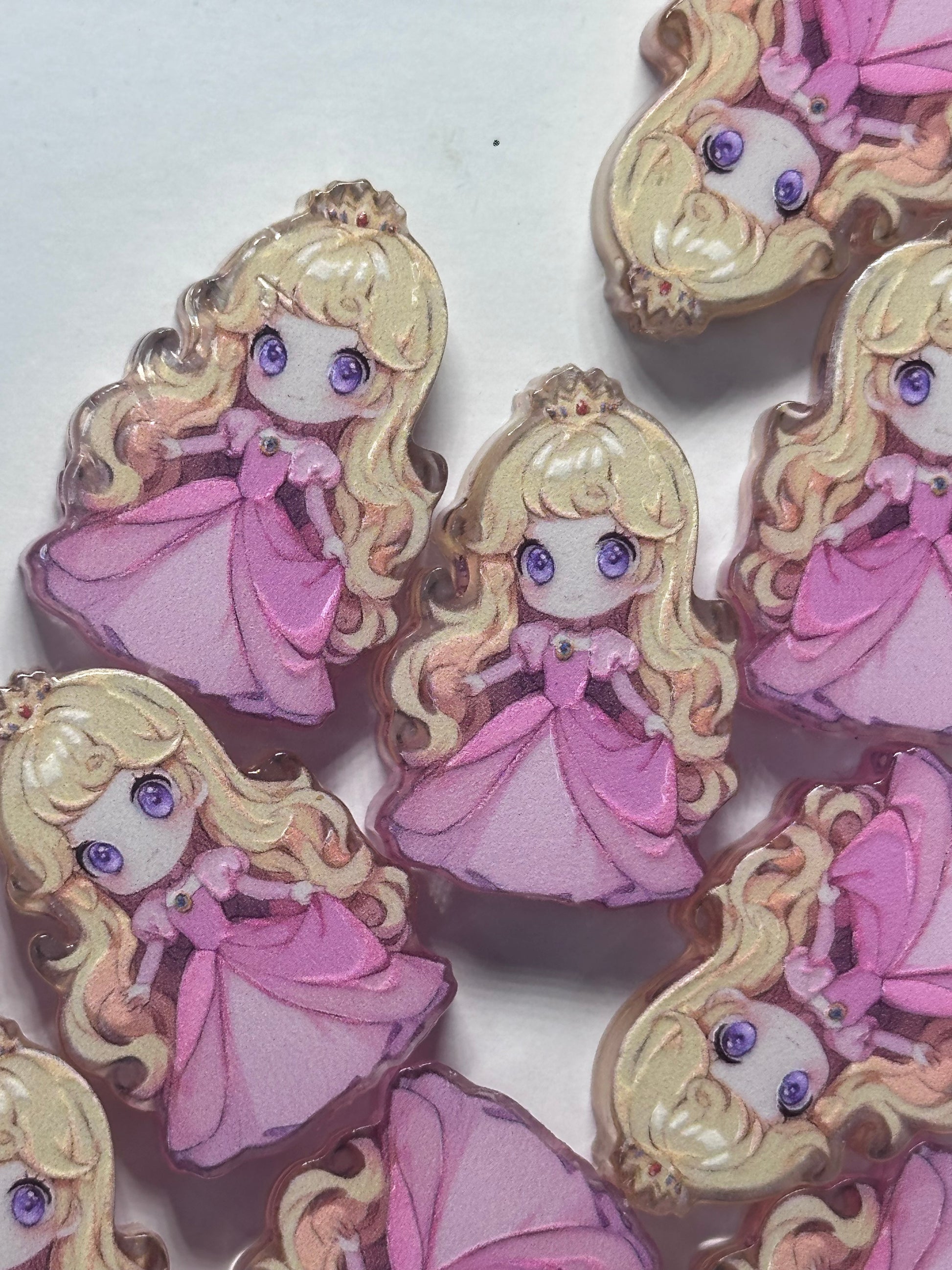 Pink dress princess acrylic focal bead- set of 2/ focal bead/ pen beading / keychain bead /blonde hair girl