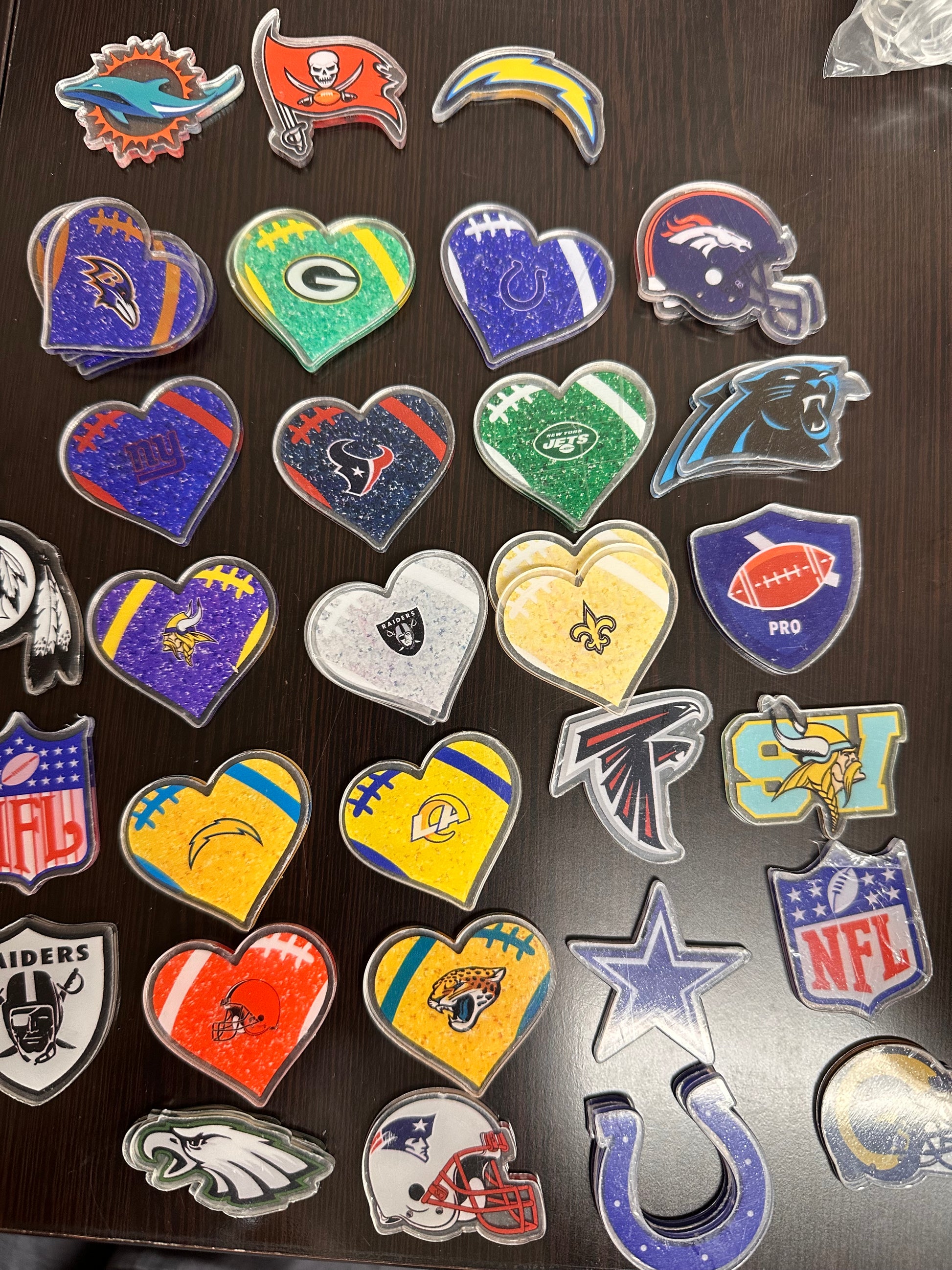 Show your team spirit while staying organized! These acrylic sports team pieces are perfect for decorating planners, journals, scrapbooks, beadable items, or DIY crafts. Each piece features vibrant team colors and logos, with a glossy finish that makes them stand out.