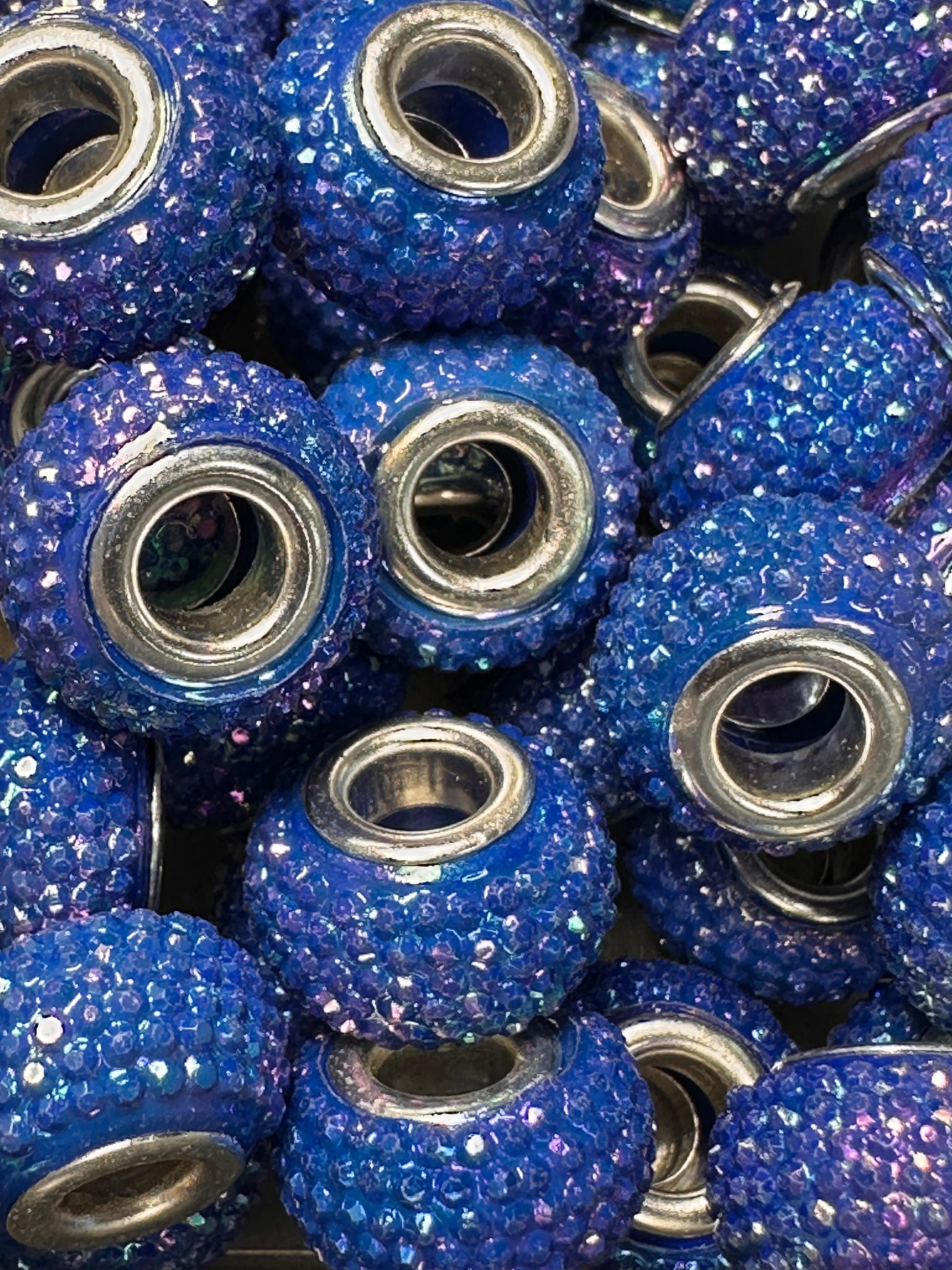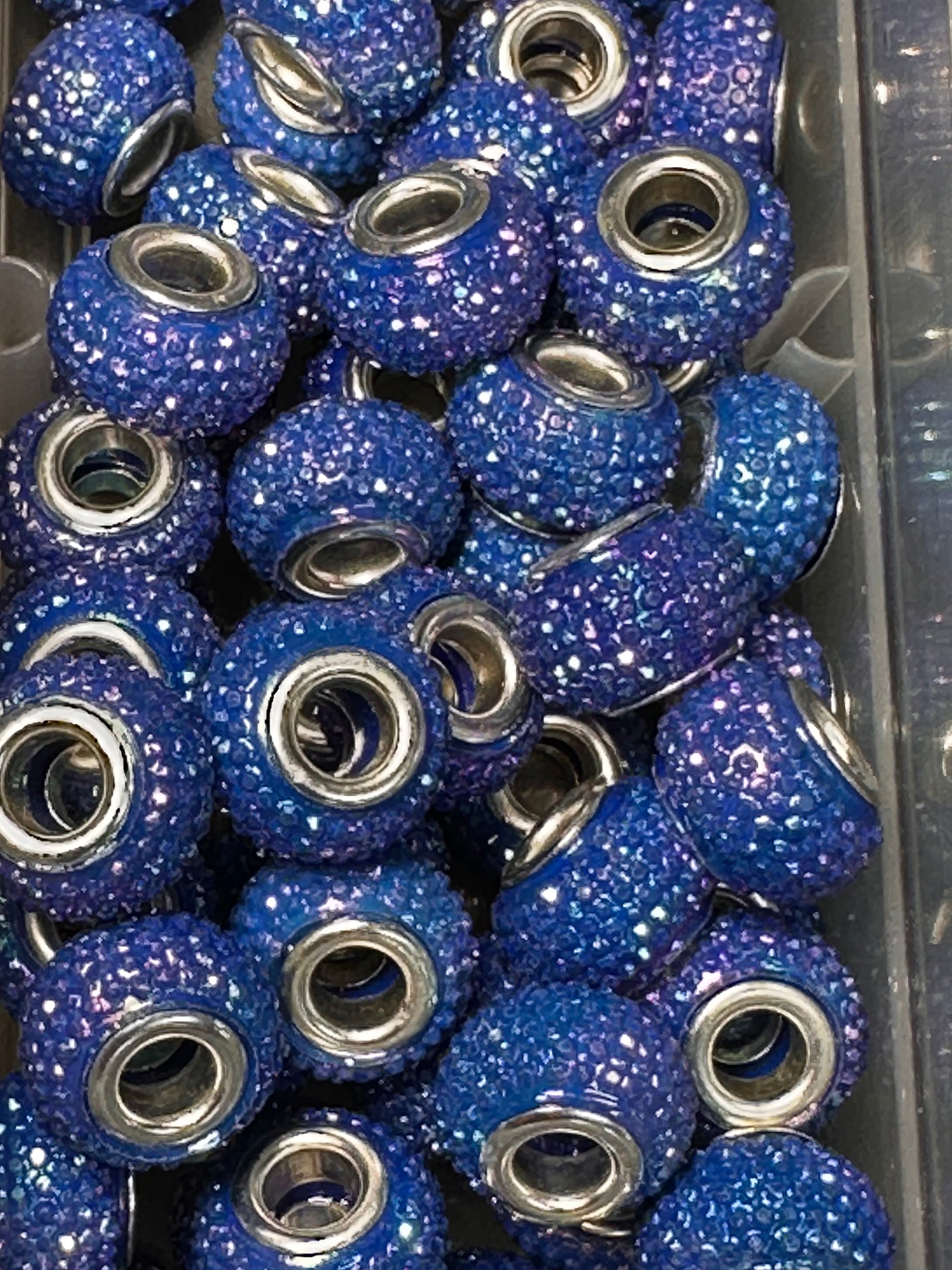 Add some shimmer to your DIY creations with these fancy rhinestone spacer beads! Each bead features a bright blue surface encrusted with tiny sparkling rhinestones, set around a durable silver-tone core. Perfect for pen beading, bracelets, necklaces, keychains, and other craft projects, these beads instantly bring a touch of glam to any design.