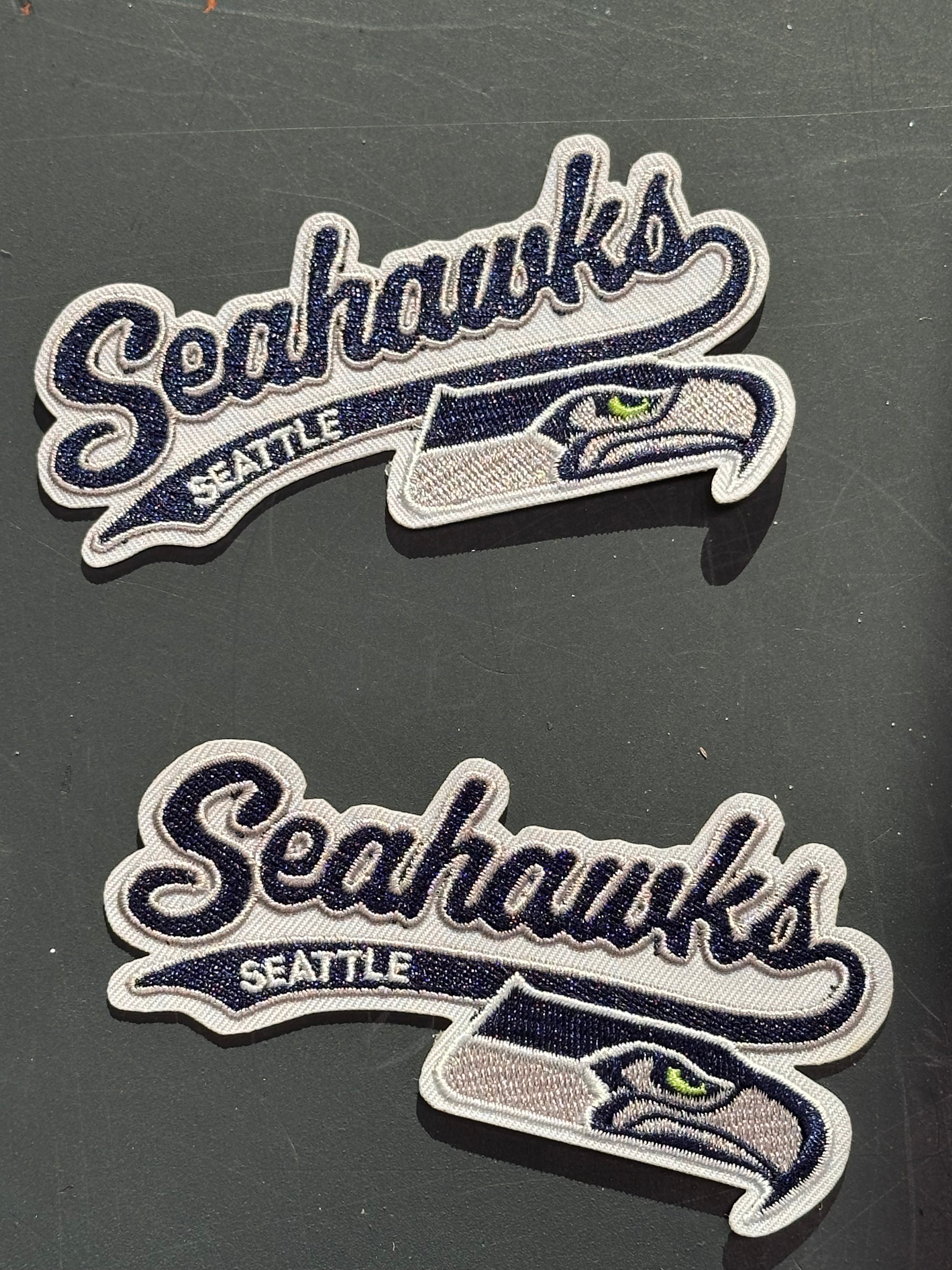 SEATTLE SEAHAWKS EMBROIDERED IRON ON PATCH/ SIZE APPROX 4" x 2"/ QUALITY MATERIAL/FABRIC PATCHES/FOOTBALL TEAM