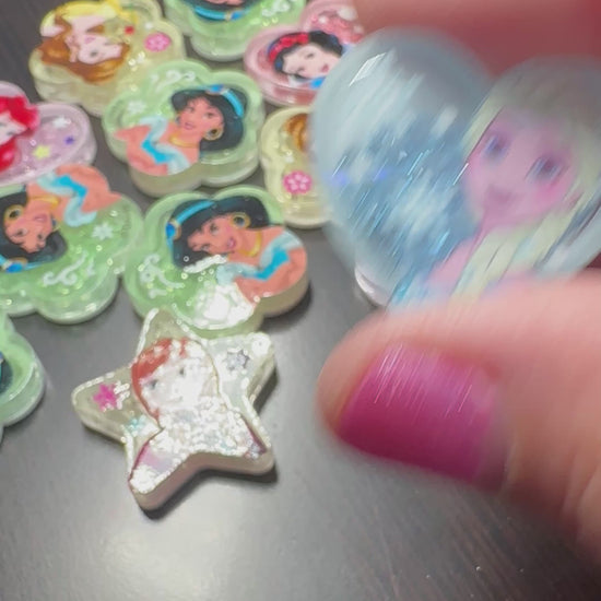 Add some sparkle and magic to your crafts with these adorable princess shaker box charms! Each charm features a beloved princess design filled with tiny floating glitter, sequins, or shapes that shake and shimmer inside the clear casing.