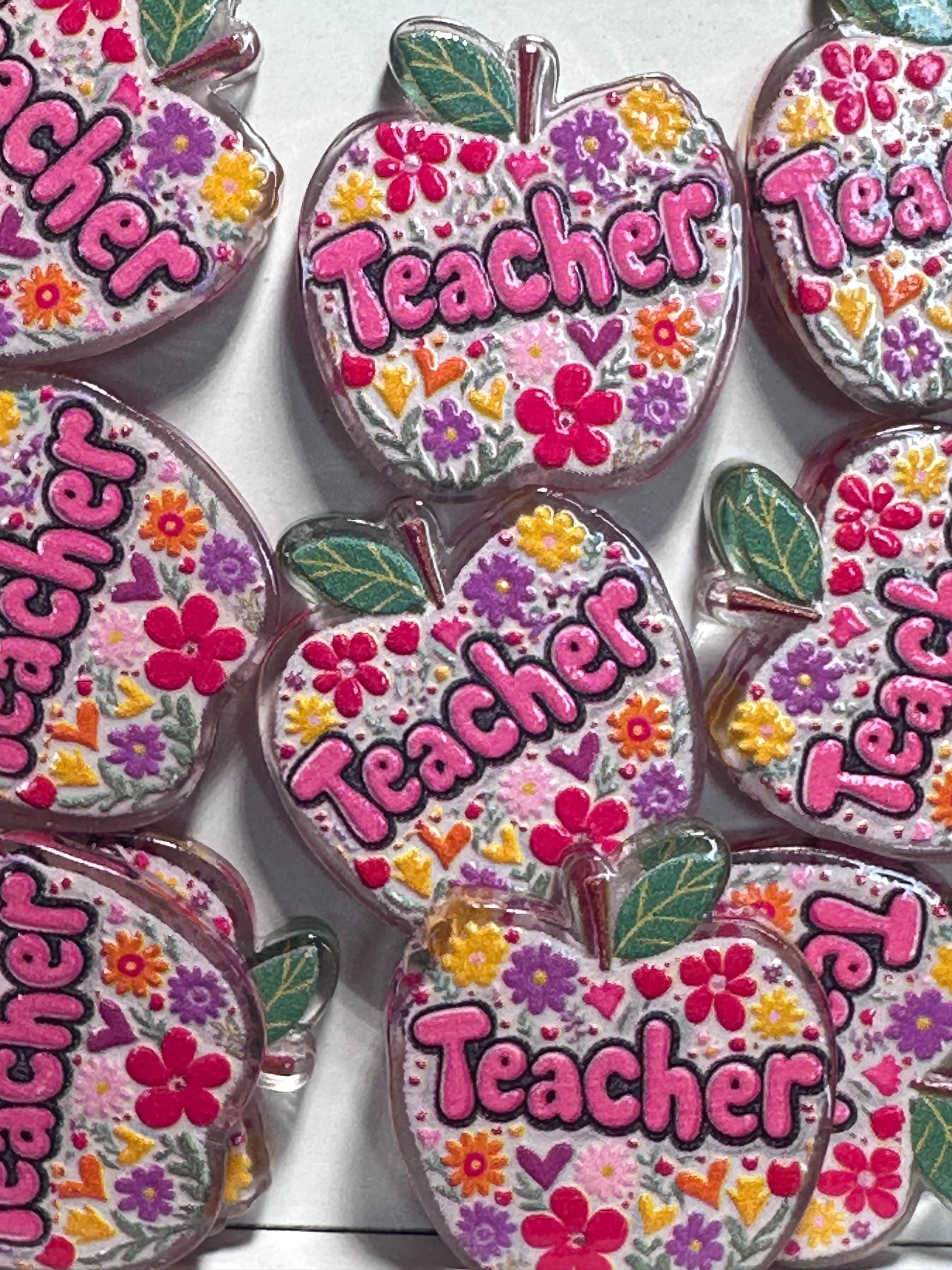 Teacher Apple shaped acrylic focal bead- set of 2/ focal bead/ pen beading / keychain bead