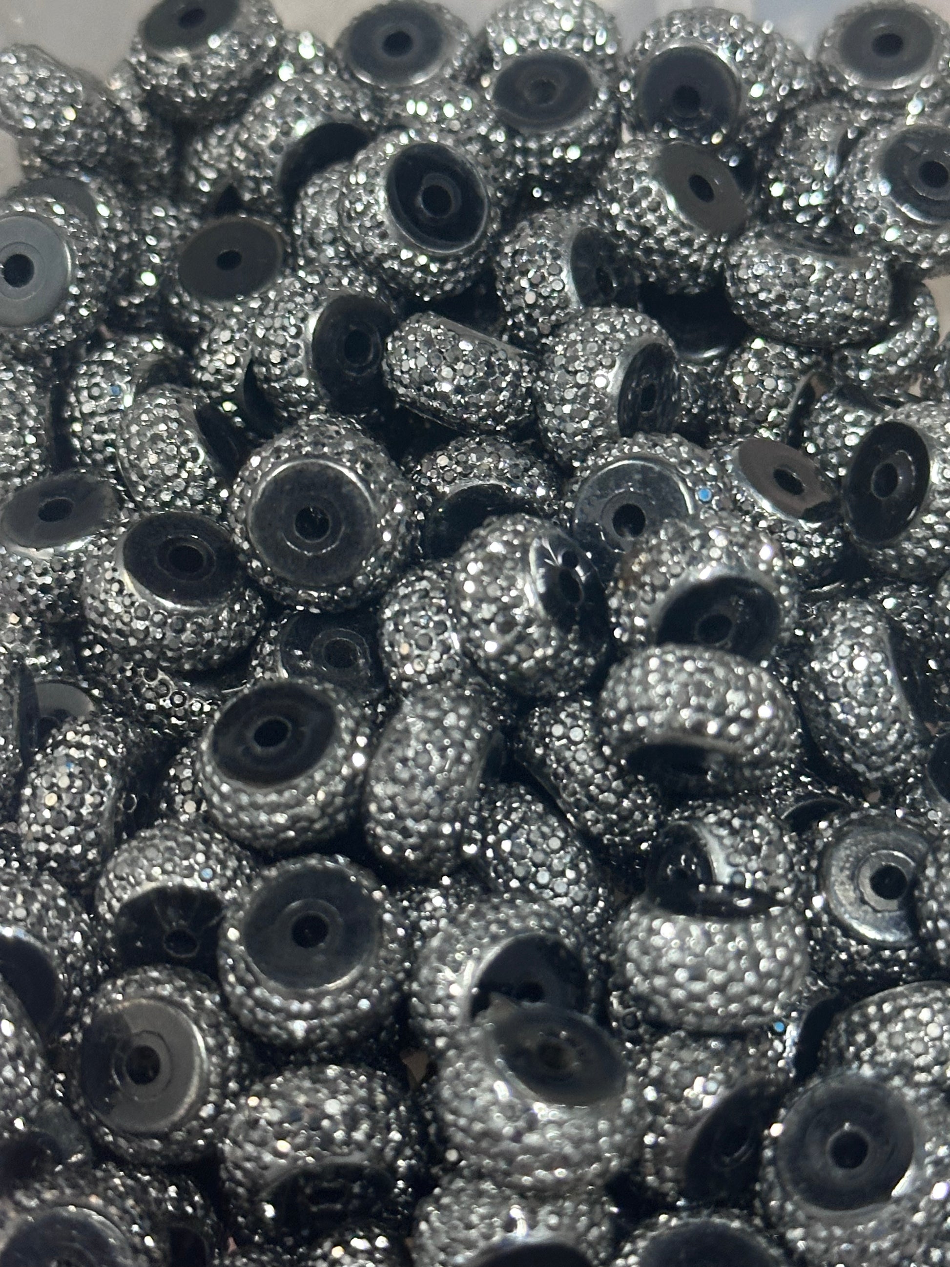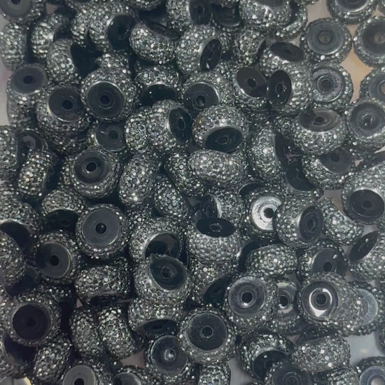 12mm Silver Rhinestone Black Spacer Beads – Set of 20