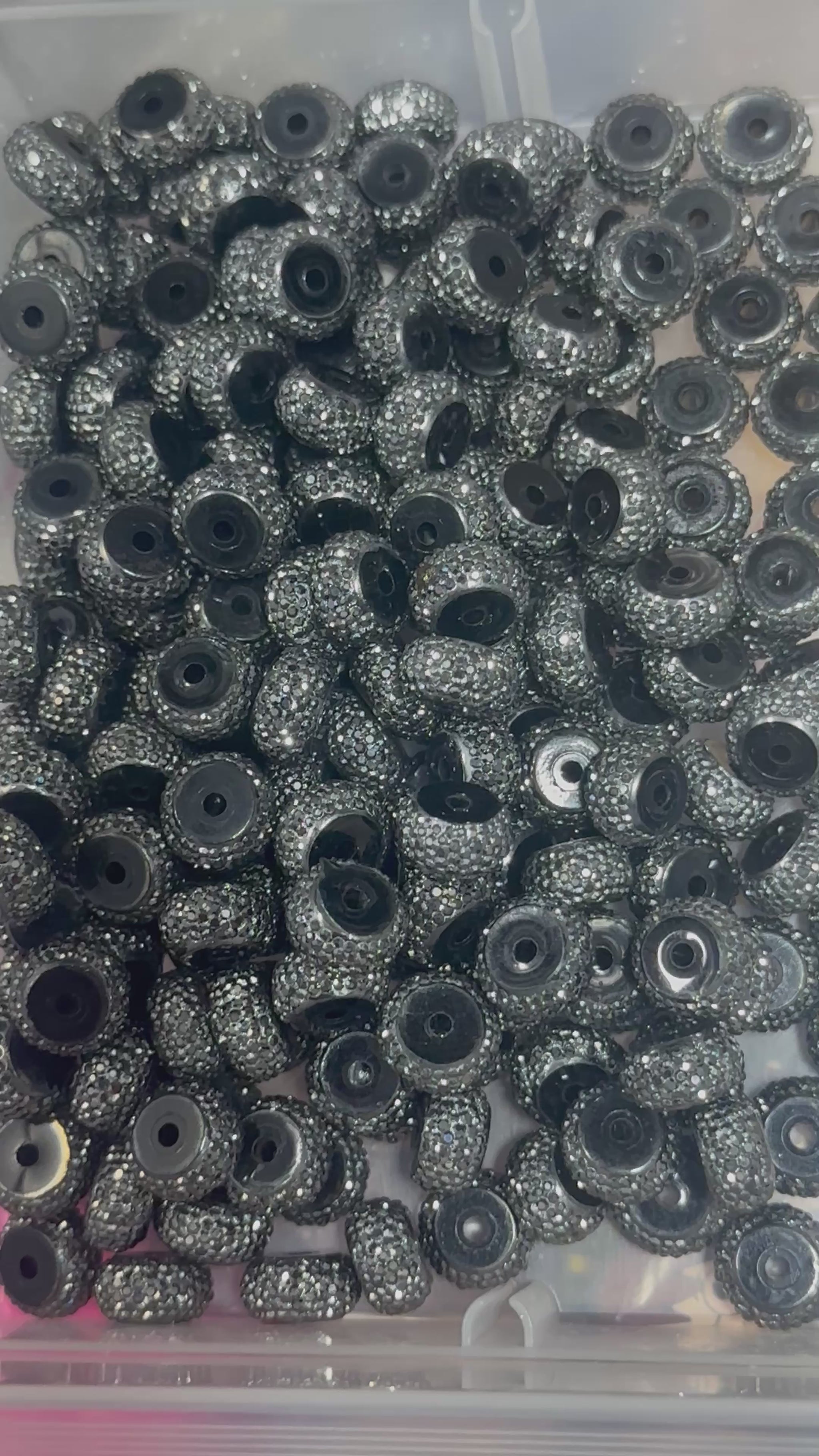 These beads are perfect for beadable pens, keychains, wristlets, jewelry, badge reels, and other DIY craft projects. The black base makes the silver stones pop beautifully and pairs well with both bold and neutral color palettes.