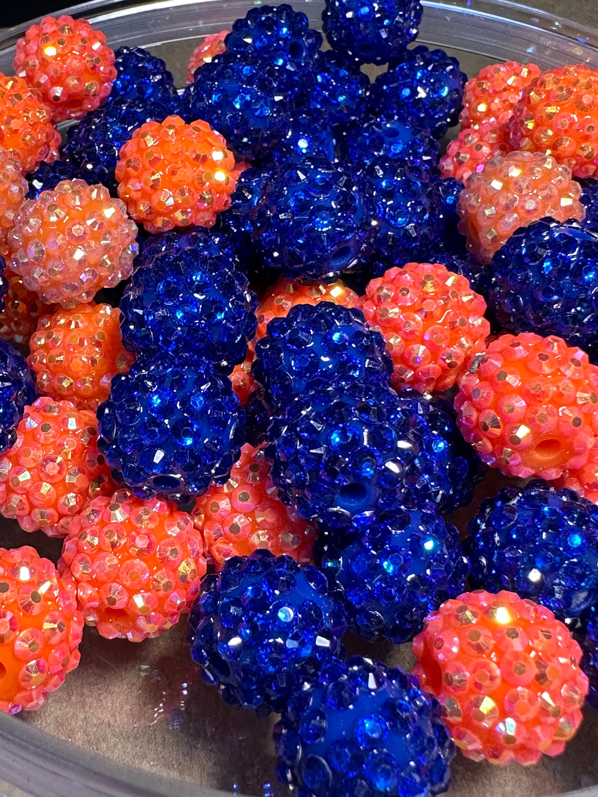 These blue and orange University of Florida colors are beautiful rhinestones beads. FIVE OF EACH COLOR. FIVE BLUE. FIVE ORANGE.