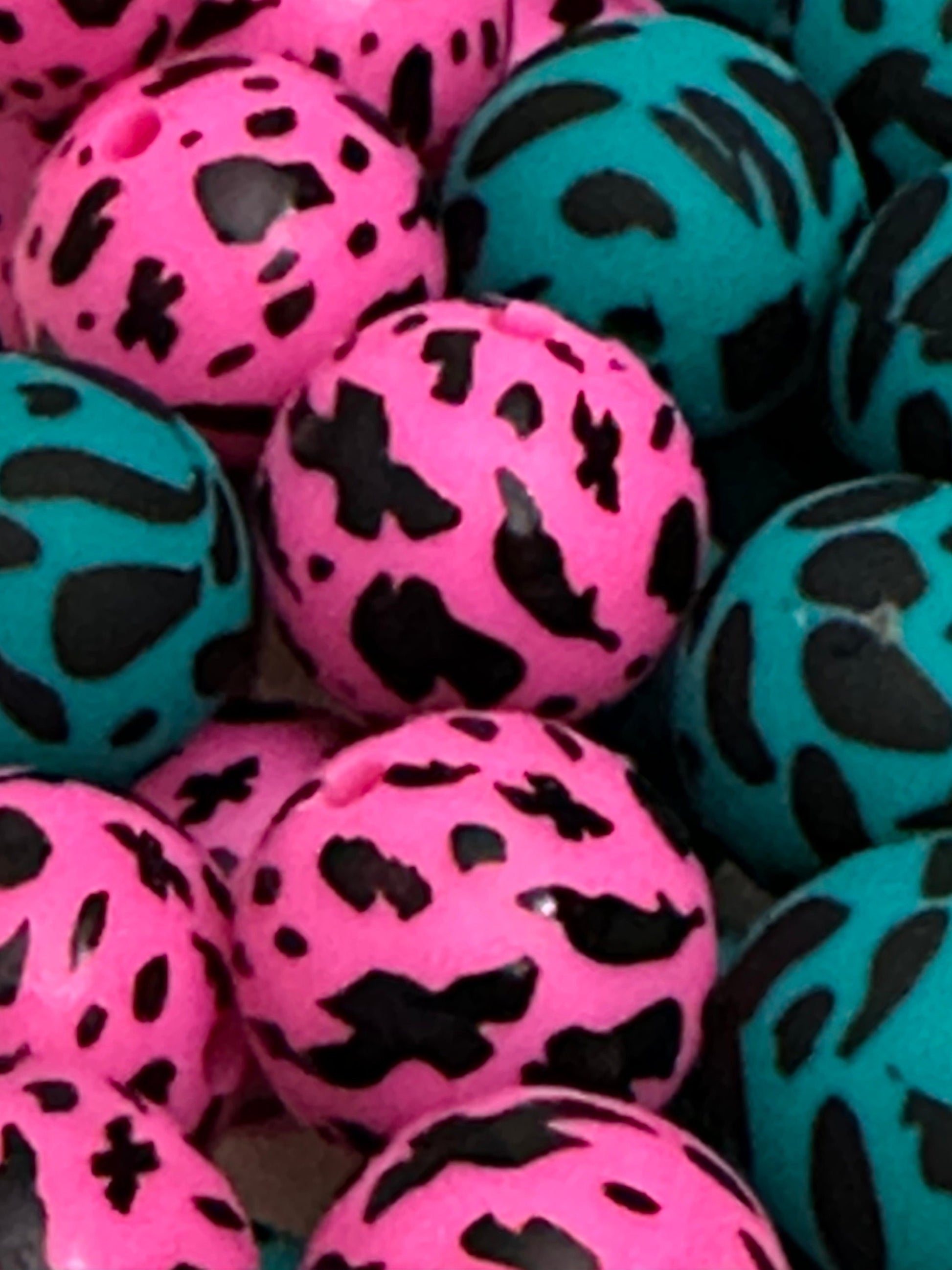 Bright pink and teal beads/15 mm Bead/ beadable pen/ keychain bead/ 15mm/ silicone