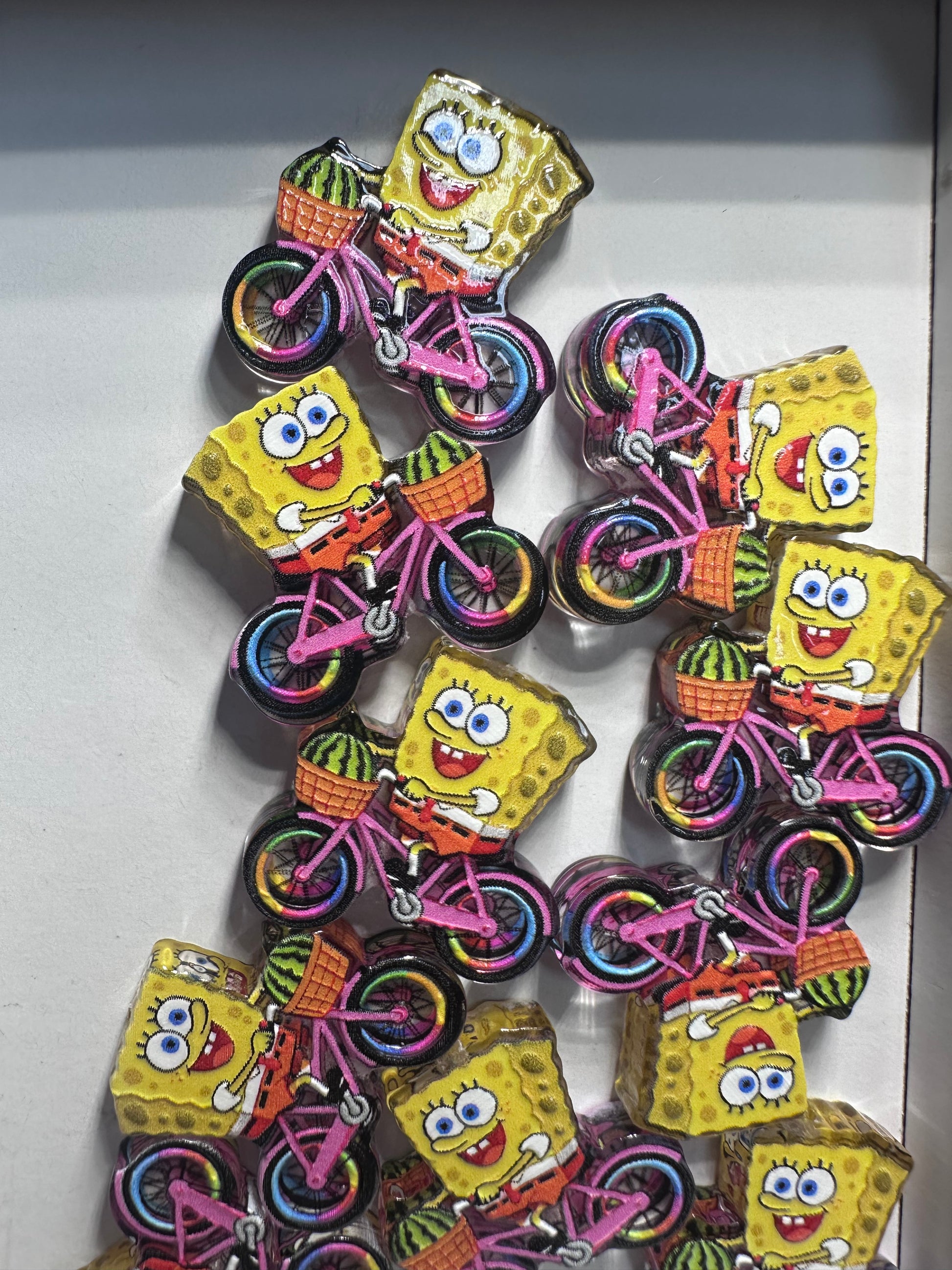 Yellow guy riding a bike acrylic focal bead- set of 2/ focal bead/ pen beading / keychain bead